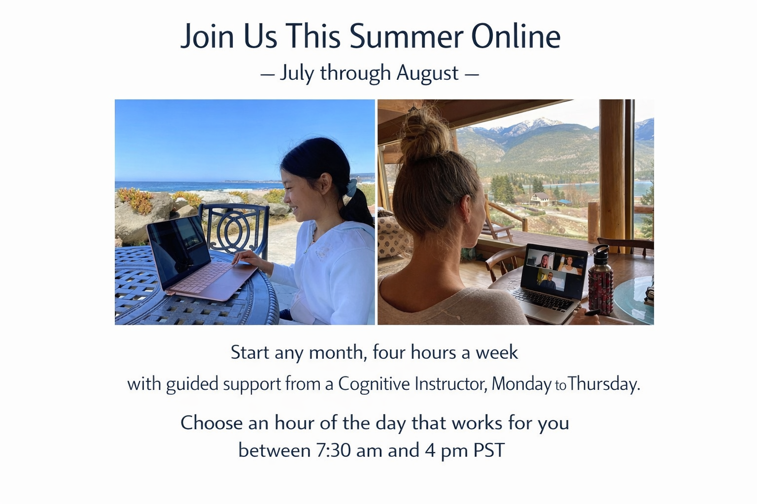 Join our Hybrid Cognitive Bridge option in Vancouver (BC) for 3 weeks, then continue with Eaton Arrowsmith Academy Online.